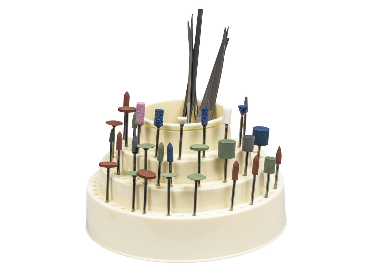 Organizează-ți eficient toate accesoriile biax cu ajutorul acestui suport rotativ, special conceput pentru ateliere de bijuterie.Cu o capacitate de până la 144 de accesorii, suportul permite depozitarea și accesul rapid la burghie, freze, capete abrazive și alte accesorii de lucru.Fabricat dintr-un plastic rezistent, suportul are un design practic, cu 4 nivele nivele dispuse circular, ce îți oferă vizibilitate completă asupra uneltelor. Sistemul rotativ facilitează selectarea rapidă a accesoriului dorit, economisind timp și menținând ordinea în spațiul de lucru.